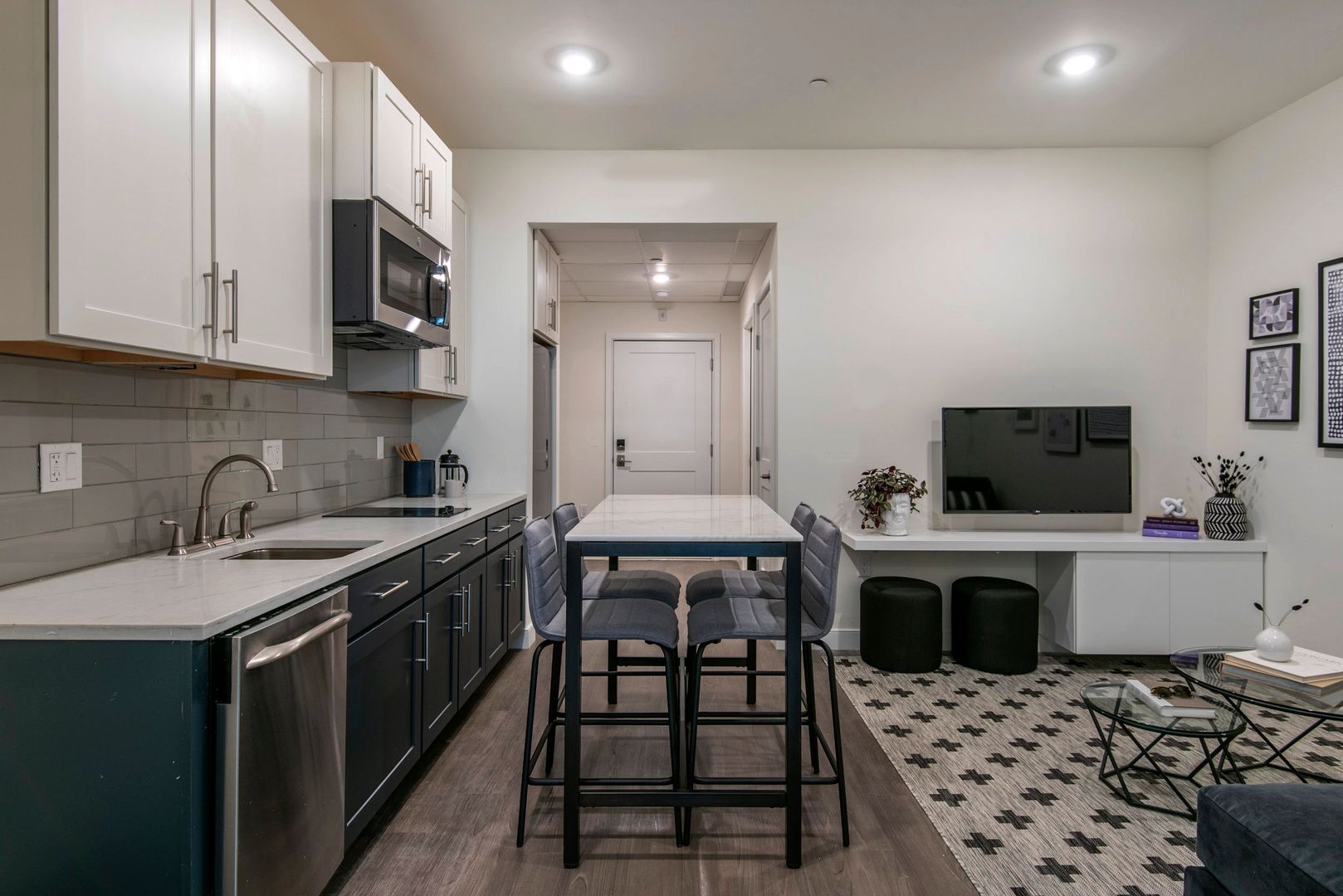 Loaded with modern amenities, we hope you love it here. Residents enjoy a multitude of amenity spaces, including a Lobby with Rideshare Waiting Area, Package Room, Club Room with Culinary Kitchen and Entertaining Spaces, Fitness Center with Yoga Room, Media Room with Projector, Themed Lounge Rooms on each floor, Co-Working Spaces, Game Area, Two Roof Decks, Outdoor Grill & Dining Area, Secured Bike Room, Free Wi-Fi in all Amenity Spaces